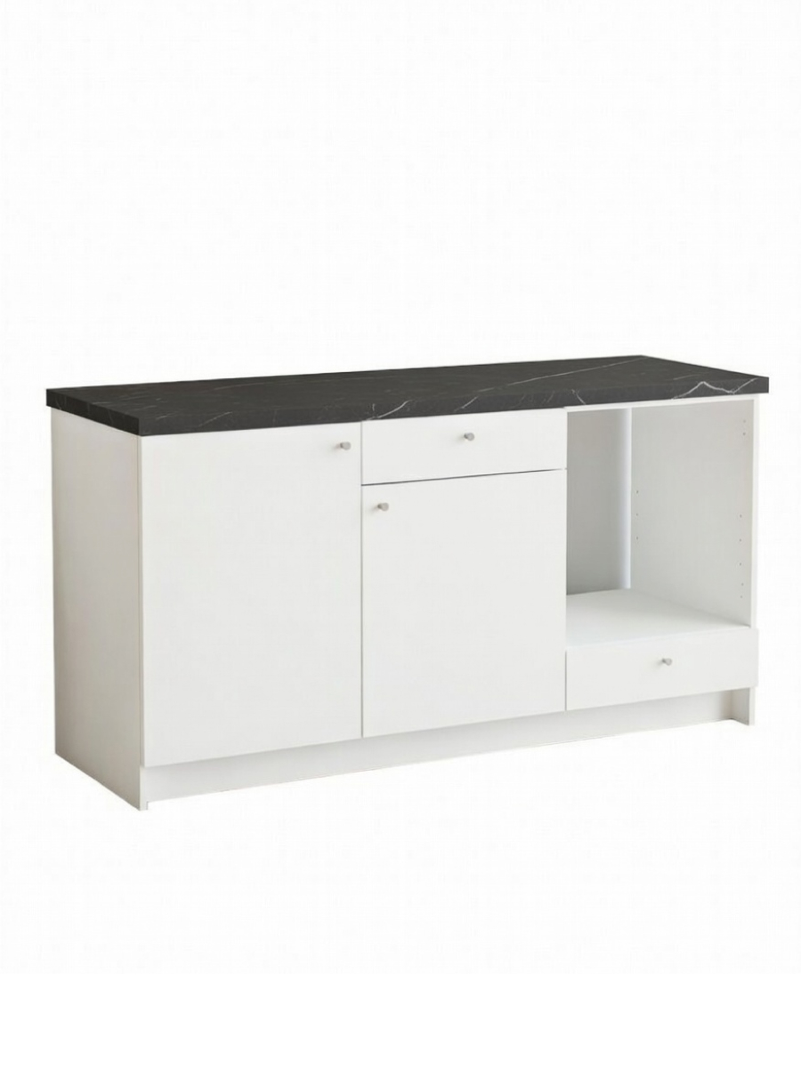 Благодаря продуманной комбинации вместительных ящиков и открытых полок, этот напольный шкаф для кухни обеспечивает идеальный порядок: все необходимое всегда под рукой и организовано по зонам.