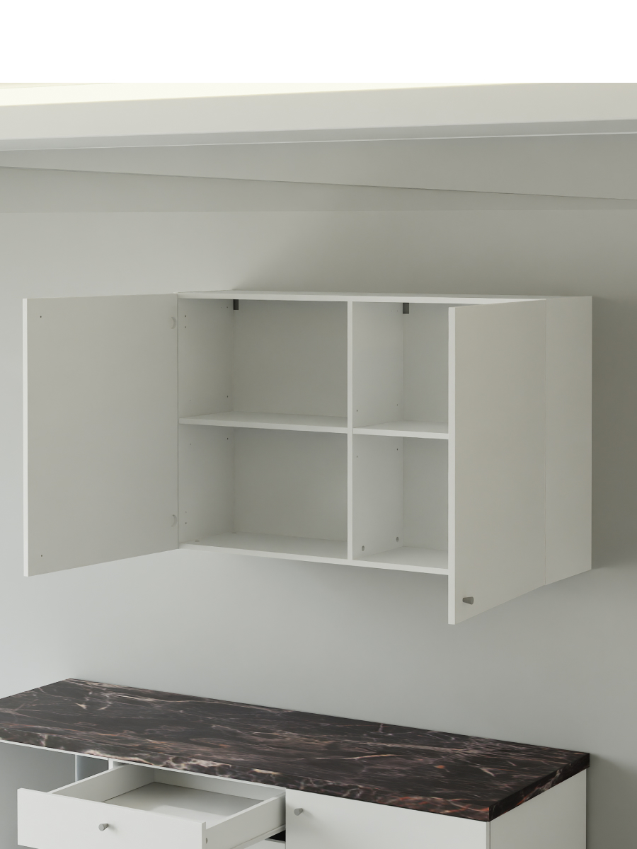 Гибкость монтажа: Модуль оснащен регулируемыми петлями. Вы можете настроить открывание дверей влево или вправо, а также перевесить их в зависимости от расположения соседних шкафов и бытовой техники. Это делает шкаф для кухни навесной максимально адаптивным к вашей планировке.