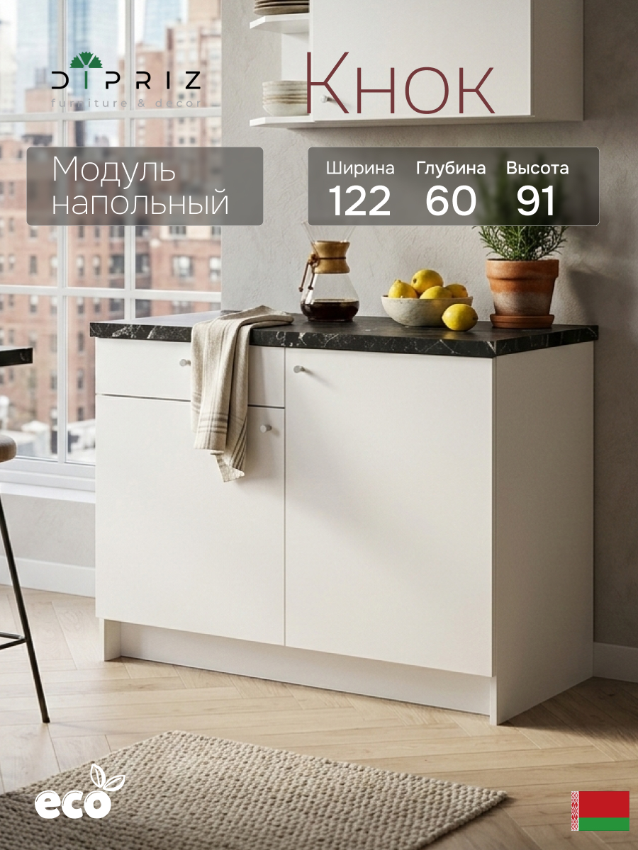 Основа любой кухни — это правильная организация нижнего яруса. Модуль кухонный напольный «Кнок» шириной 120 см от бренда Dipriz представляет собой готовое решение для хранения посуды, продуктов и кухонной утвари. Выполненный в традициях скандинавского минимализма, этот модуль станет надежной базой для вашего гарнитура и является функциональным аналогом популярной серии KNOXHULT (КНОКСХУЛЬТ) от IKEA.