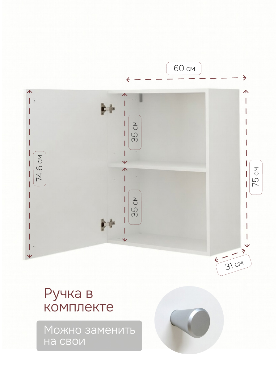 Универсальный размер: Это кухонный модуль навесной 60 см шириной — стандарт для размещения над столешницей или встраиваемой техникой. Компактная глубина идеально подходит даже для самых малогабаритных кухонь.