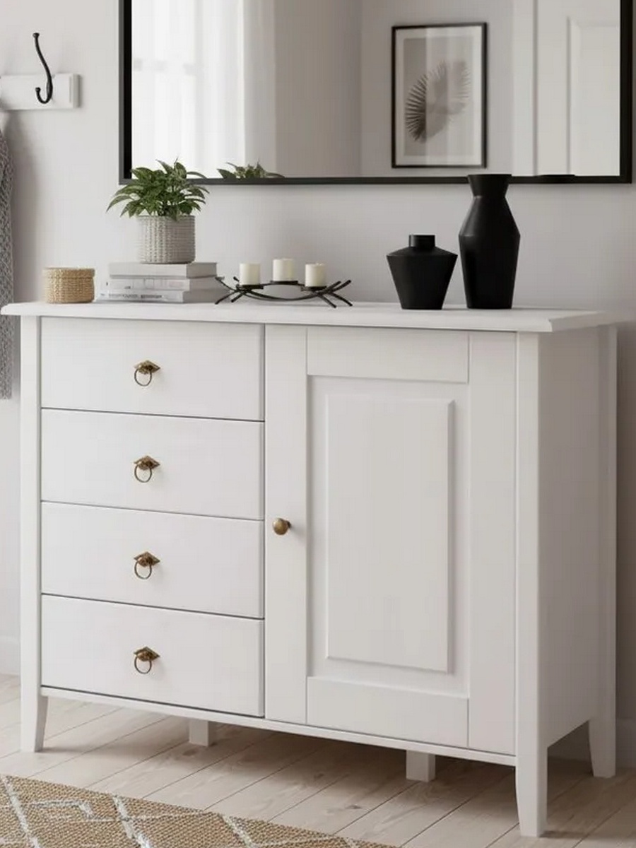 ✅ Компактность и вместимость: Ширина всего 103 см позволяет вписаться в узкие пространства. 4 глубоких ящика и полка за дверцей — оптимальная организация для множества вещей.