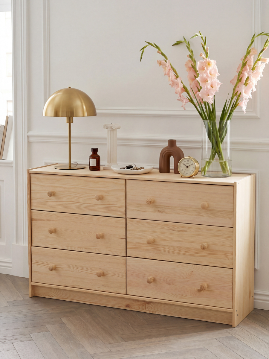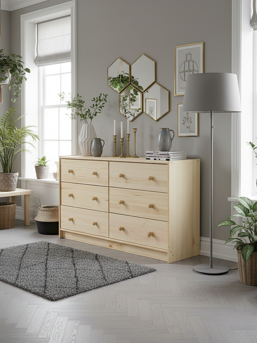 Комод ikea Раст – это современное сочетание стиля и функциональности. Минималистичный дизайн и просторные ящики делают его идеальным выбором для хранения вещей и создания стильного интерьера. Стильный комод из массива сосны отлично впишется в комнаты современного и скандинавского стиля, бохо, лофт, минимализм. Подчеркните уникальность и создайте свое уютное домашнее пространство с нашей мебелью. Мы заботимся о Вашем удобстве!