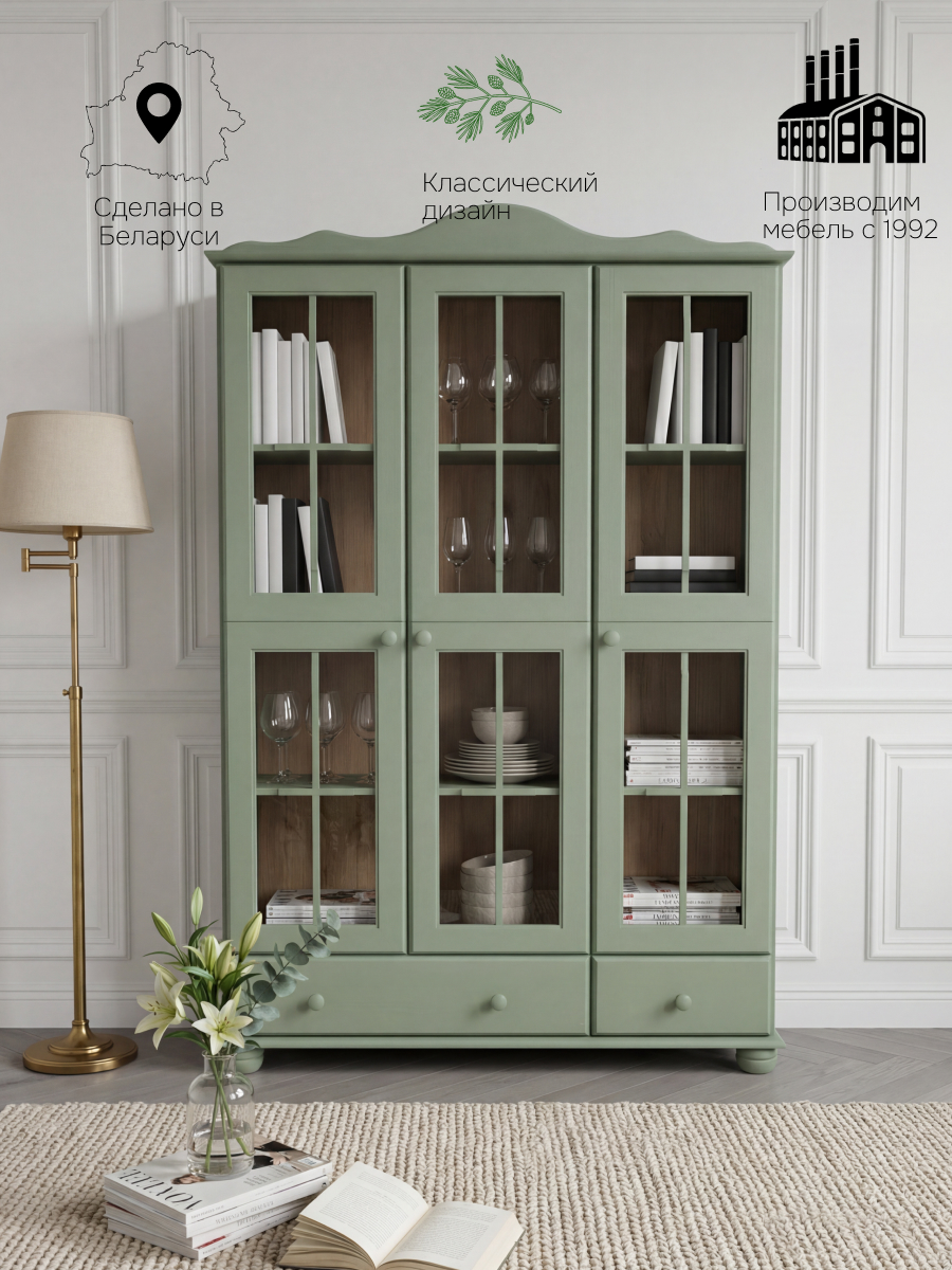Шкаф с витриной Бритта изготовлена из натурального дерева сосны от белорусского производителя мебели "Диприз". Шкаф с витриной отличается элегантным современным дизайном, который легко сочетается с любым стилем и декором!Основные характеристики:
