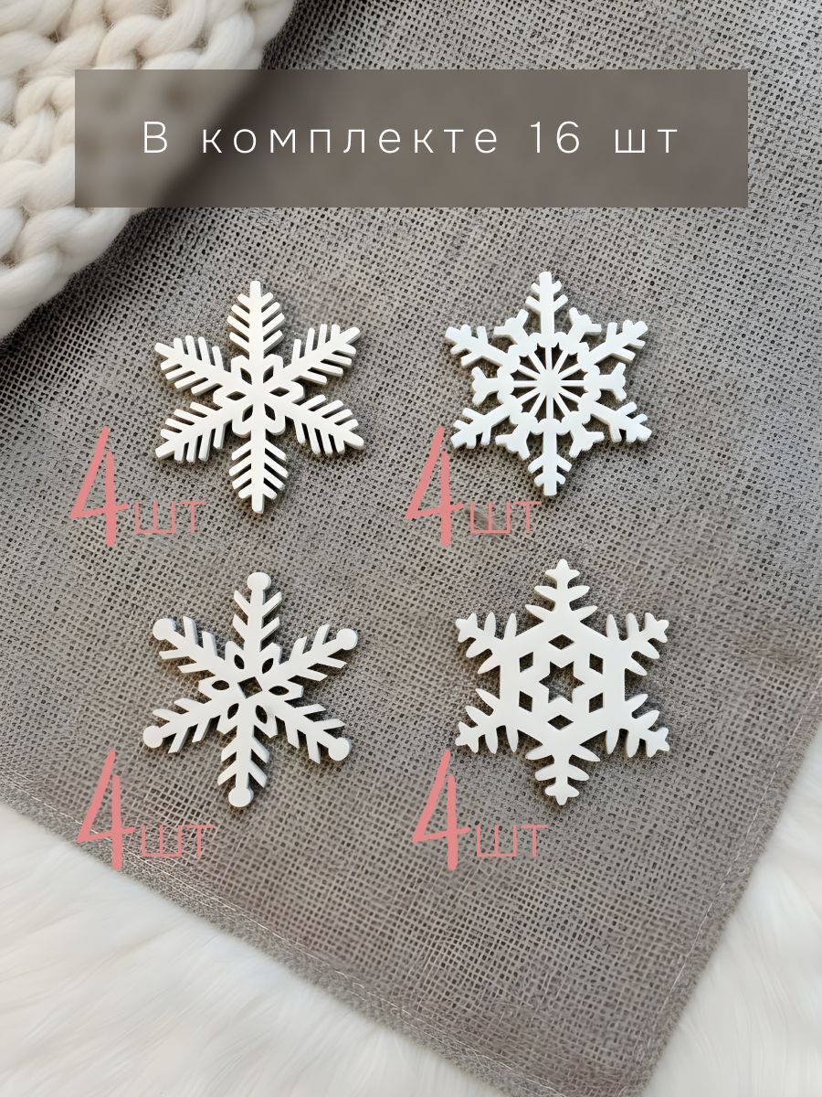 Снежинки из дерева (16 шт.), подарочная упаковка, золотистые нитки