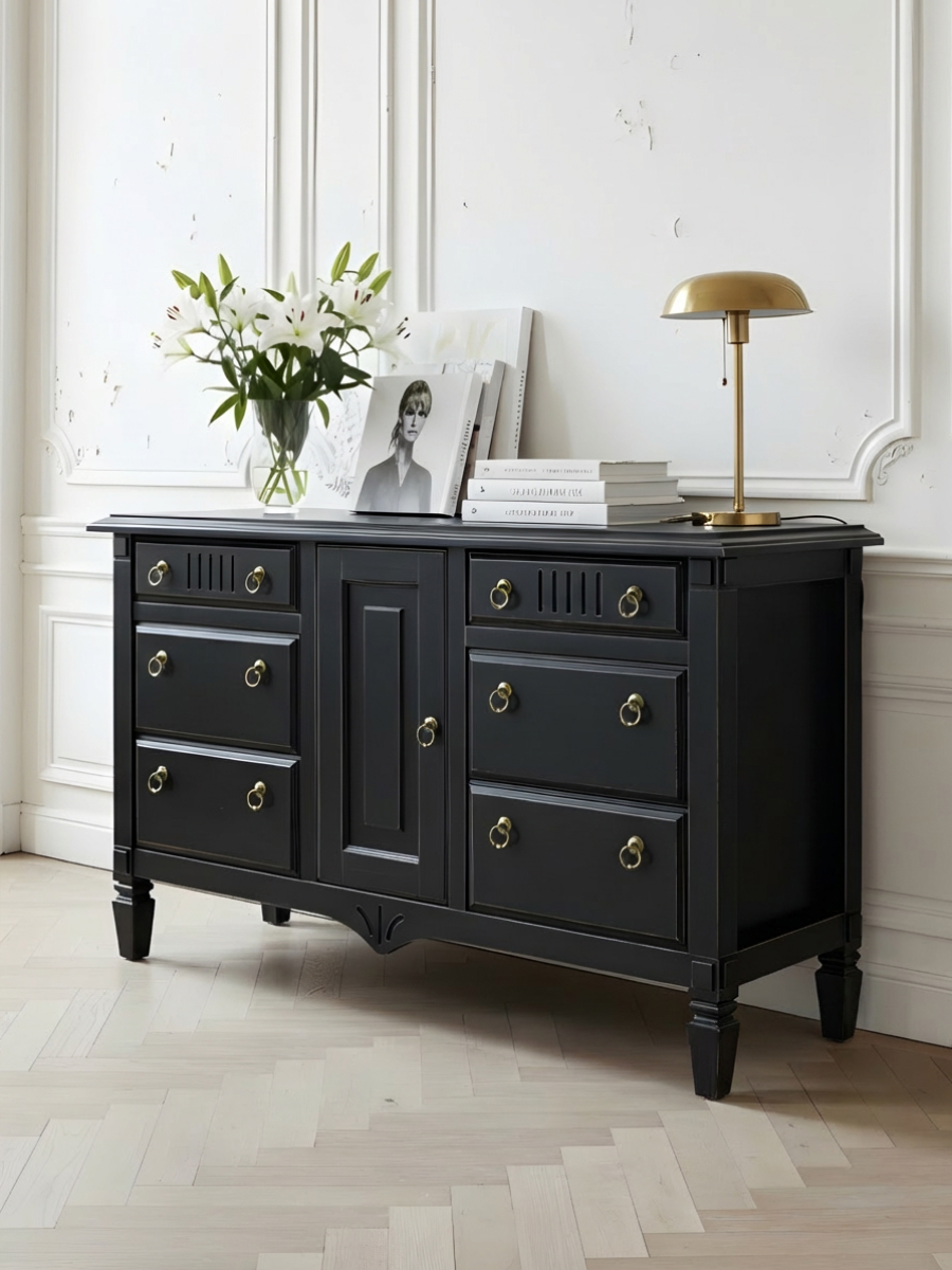 Комод 160х50х94, Джоли, с шестью ящиками для одежды, в спальню, прихожую, гостиную, массив березы, черный, Makosa
