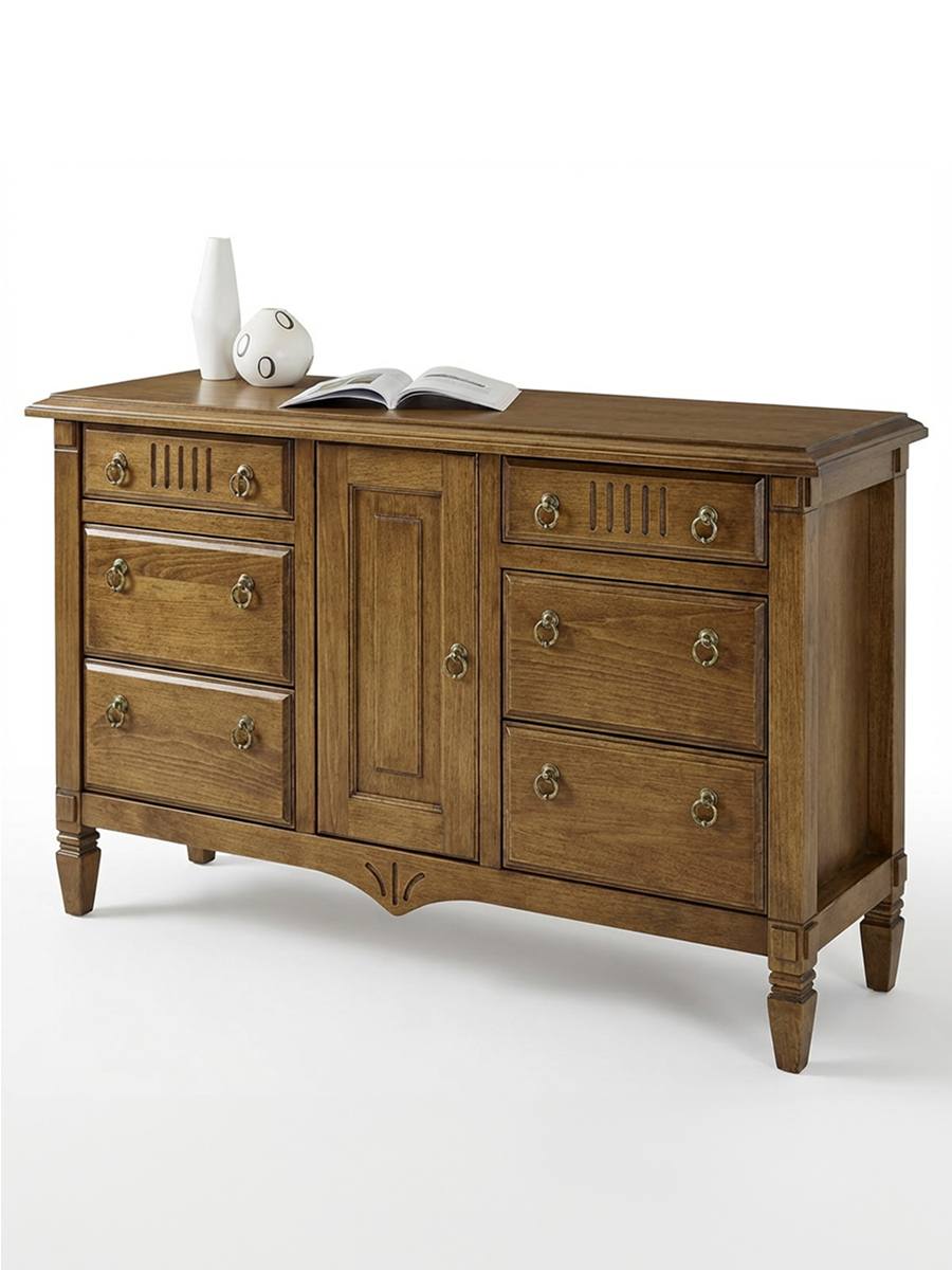 Созданный из прочного массива березы с эмалевым покрытием, он станет центральным элементом интерьера в духе английской неоклассики. Шесть глухих ящиков обеспечивают максимальную вместительность, а скрытые направляющие и доводчики гарантируют бесшумное использование даже при полной загрузке до 80 кг.