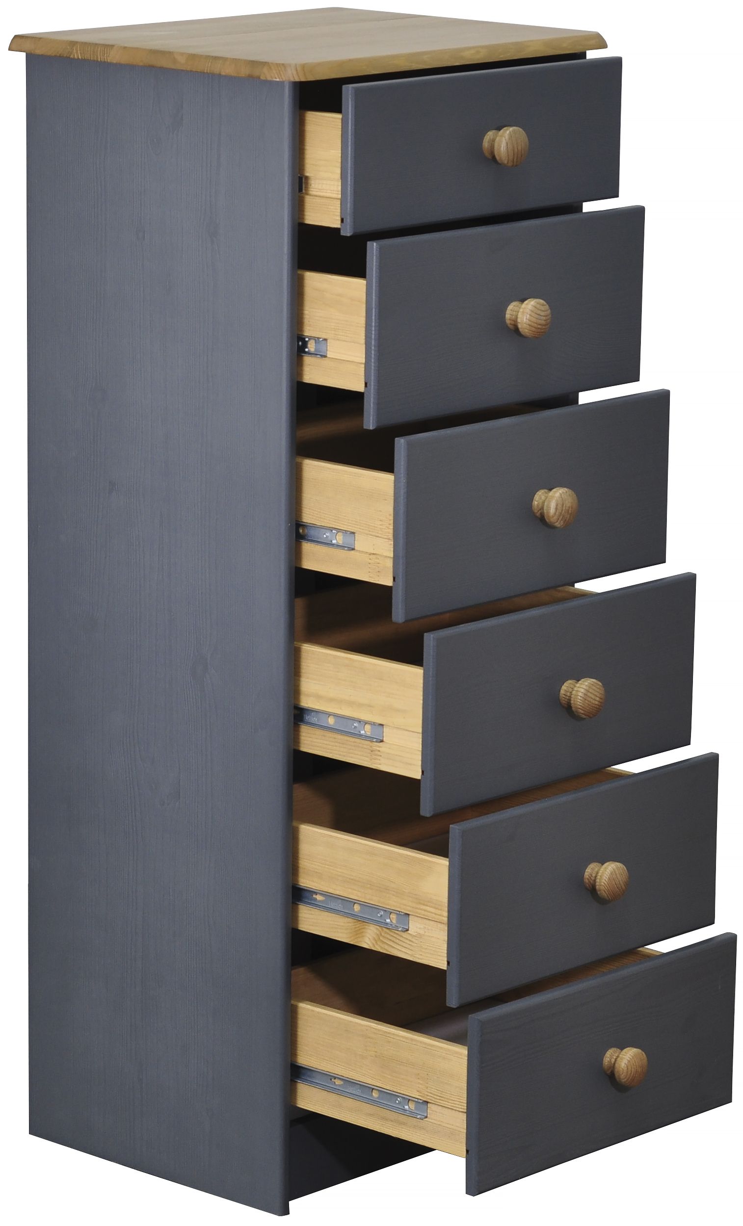Внутренние размеры ящиков обеспечивают максимальную практичность: верхний ящик имеет размер 12.5х35.4х29.4 см, остальные — 15.8х35.4х29.4 см, а внутренний размер всех ящиков — 8.5х31.2х26.8 см. Каждый ящик можно использовать для хранения разных категорий вещей: верхние - для аксессуаров и небольших предметов, средние - для одежды и постельного белья, а нижние - для домашней одежды. В комоде с выдвижными ящиками используются качественные металлические роликовые направляющие, который придают ему дополнительную надежность и долговечность.
