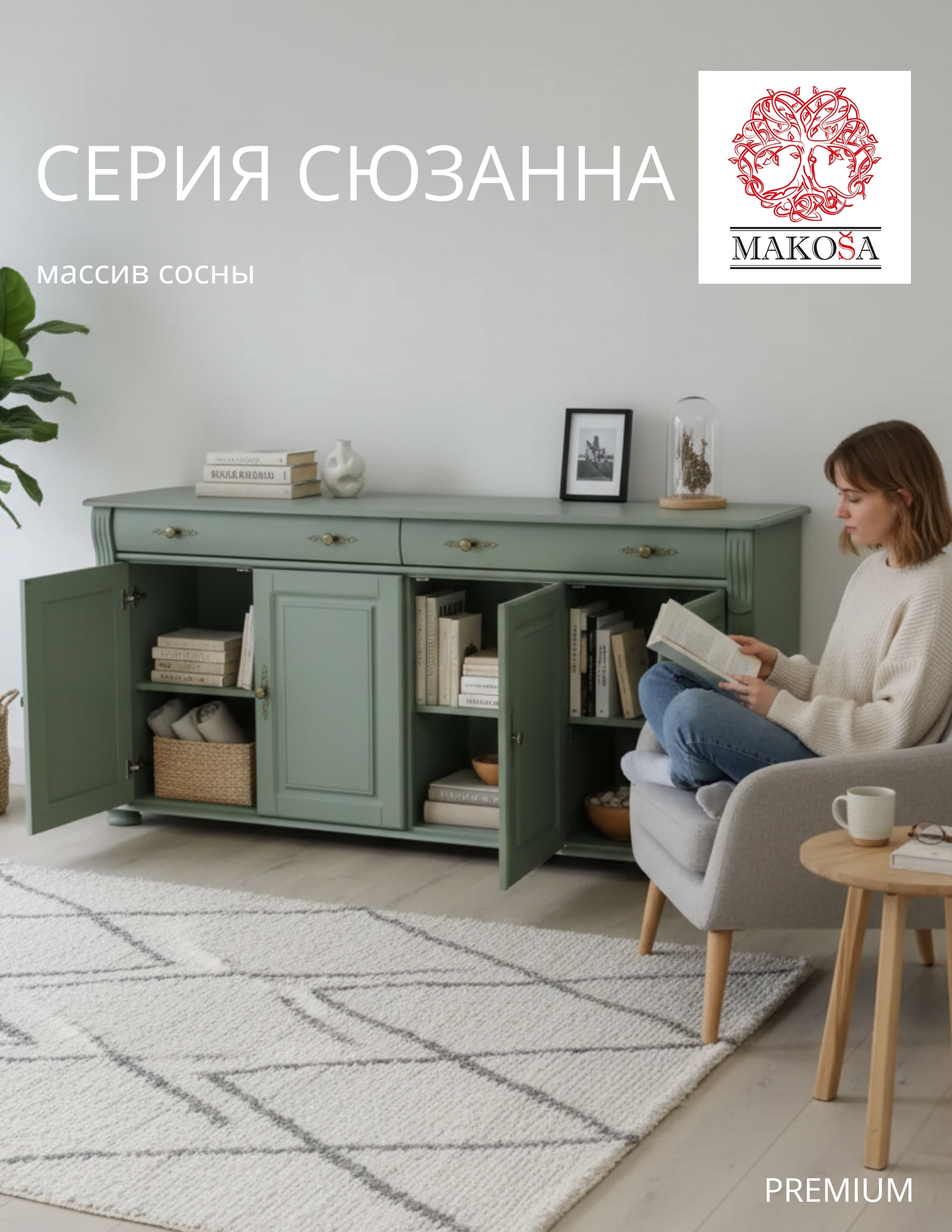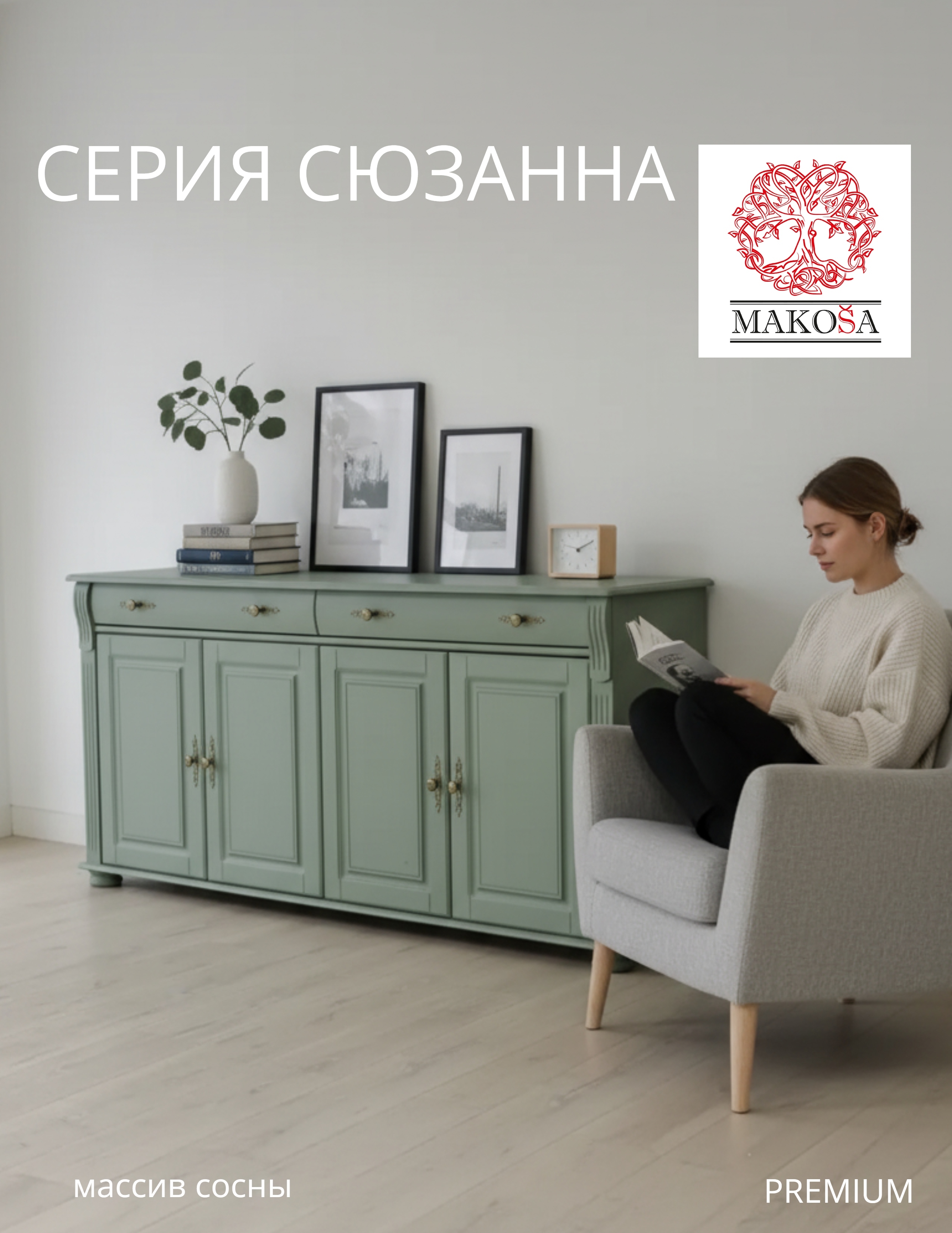 Комод "Сюзанна" из массива сосны – стиль и функциональность для вашего домаДобавьте элегантности и уюта в ваш интерьер с комодом "Сюзанна"! Изготовленный из натурального массива сосны, этот комод сочетает в себе классический дизайн и практичность. Скандинавский эвкалиптовый цвет и изящные латунные ручки с декоративными элементами придают ему утонченный винтажный шарм, который идеально впишется в спальню, гостиную или прихожую.Характеристики: