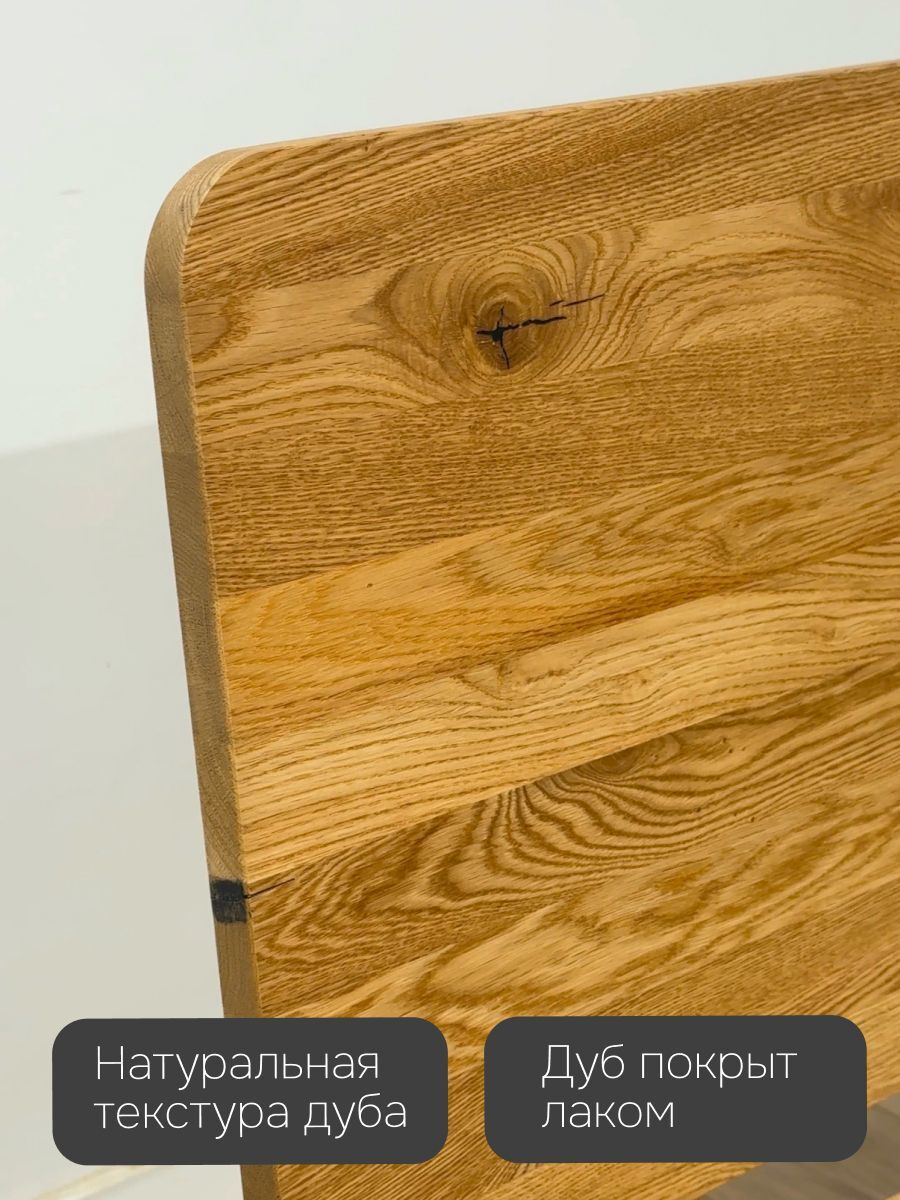 - Натуральный массив дуба: Прочность, долговечность и уникальная текстура каждого изделия. Обработка бесцветным лаком подчеркивает естественную красоту дерева.