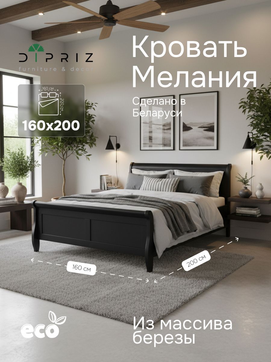 Выполненная в классическом стиле "сани" (sleigh bed), она очаровывает плавными, закругленными линиями изголовья и изножья, напоминающими изящные очертания старинных саней. Этот традиционный дизайн сочетает в себе утонченную элегантность французского провинциального стиля с современной функциональностью, идеально вписываясь в интерьеры от классики до минимализма. Черный цвет, нанесенный экологичными красками, подчеркивает натуральную текстуру дерева, создавая ощущение глубины и роскоши, которое так манит прикоснуться.