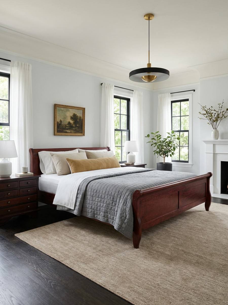 Серия "Мелания" явно черпает из французской мебели эпохи Людовика Филиппа (Louis Philippe, 1830–1848 годы), когда sleigh beds стали популярны как символ комфорта и роскоши для буржуазии. Эти формы вдохновлены более ранними стилями: рококо Людовика XV с его органичными кривыми и ампир Наполеона с императорской строгостью. Представьте себе сани, скользящие по снегу Версаля — вот откуда эта волнообразная эстетика! В истории дизайна такие кровати ассоциируются с романтизмом 19 века, когда мебель начала отходить от орнаментальной вычурности барокко к более доступной элегантности.