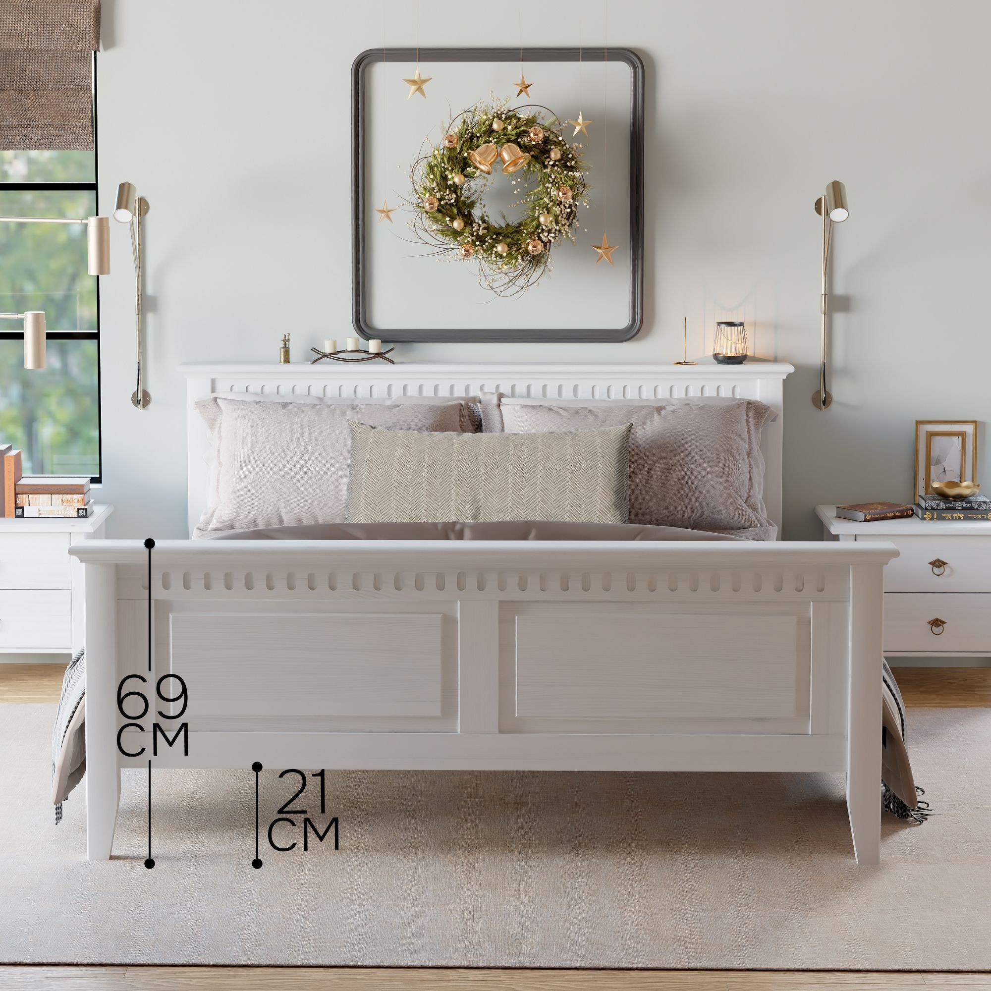 Просторная и прочная двуспальная кровать Боцен от белорусского производителя ООО "Диприз" выполнена из натурального дерева - массива сосны. Размер спального места - 160х200 см. Спинки кровати украшены простой, но изящной фрезеровкой, которая удачно декорирует изделие под классический стиль. Экологически чистое белое покрытие кровати придаст ощущение опрятности и чистоты Вашей спальне. Высота кровати 88 см, спальное место расположено на высоте 38,5 см от пола. Качественная фурнитура обеспечивает надежность и долговечность конструкции, а также делает сборку кровати незатейливой. Подробная инструкция по сборке прилагается.