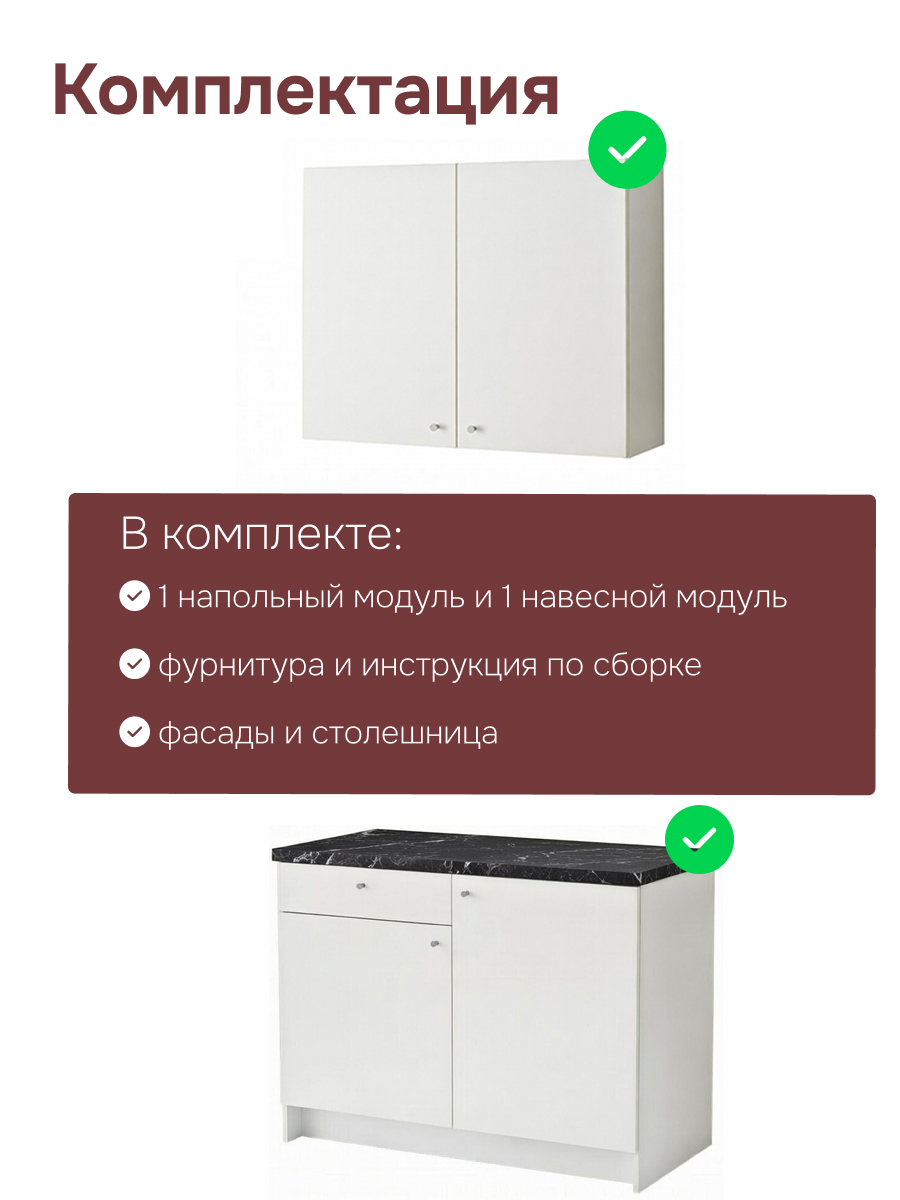Оба модуля изготовлены из высококачественной ЛДСП с прочным ламинированным покрытием. Материал устойчив к царапинам, сколам и воздействию влаги, что гарантирует долговечность даже в условиях интенсивной кухонной эксплуатации. Надежная фурнитура обеспечивает плавное и бесшумное движение ящиков и мягкое закрывание дверей. Производитель предоставляет гарантию 12 месяцев на оба изделия, подтверждая уверенность в качестве конструкции.