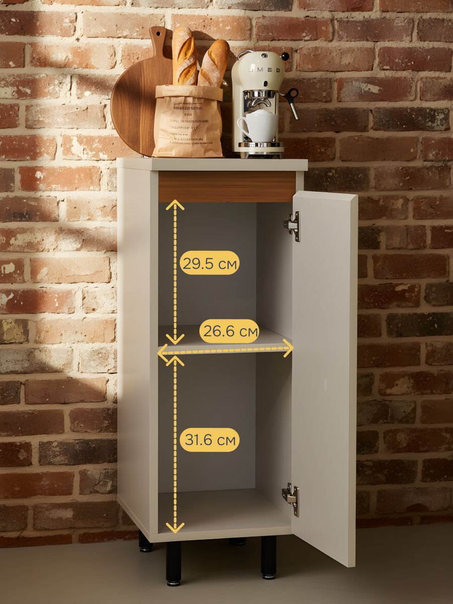 Кухонный напольный модуль "Малага" – узкий, но вместительный элемент кухонного гарнитура, идеально подходящий для организации хранения.