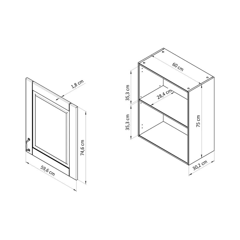 Навесной кухонный модуль с полкой - 1 шт.