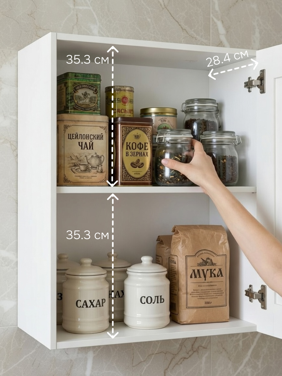 - Компактный размер и простой дизайн делают его идеальным выбором для любой кухни, обеспечивая удобный доступ к внутреннему пространству для хранения кухонных принадлежностей и посуды.