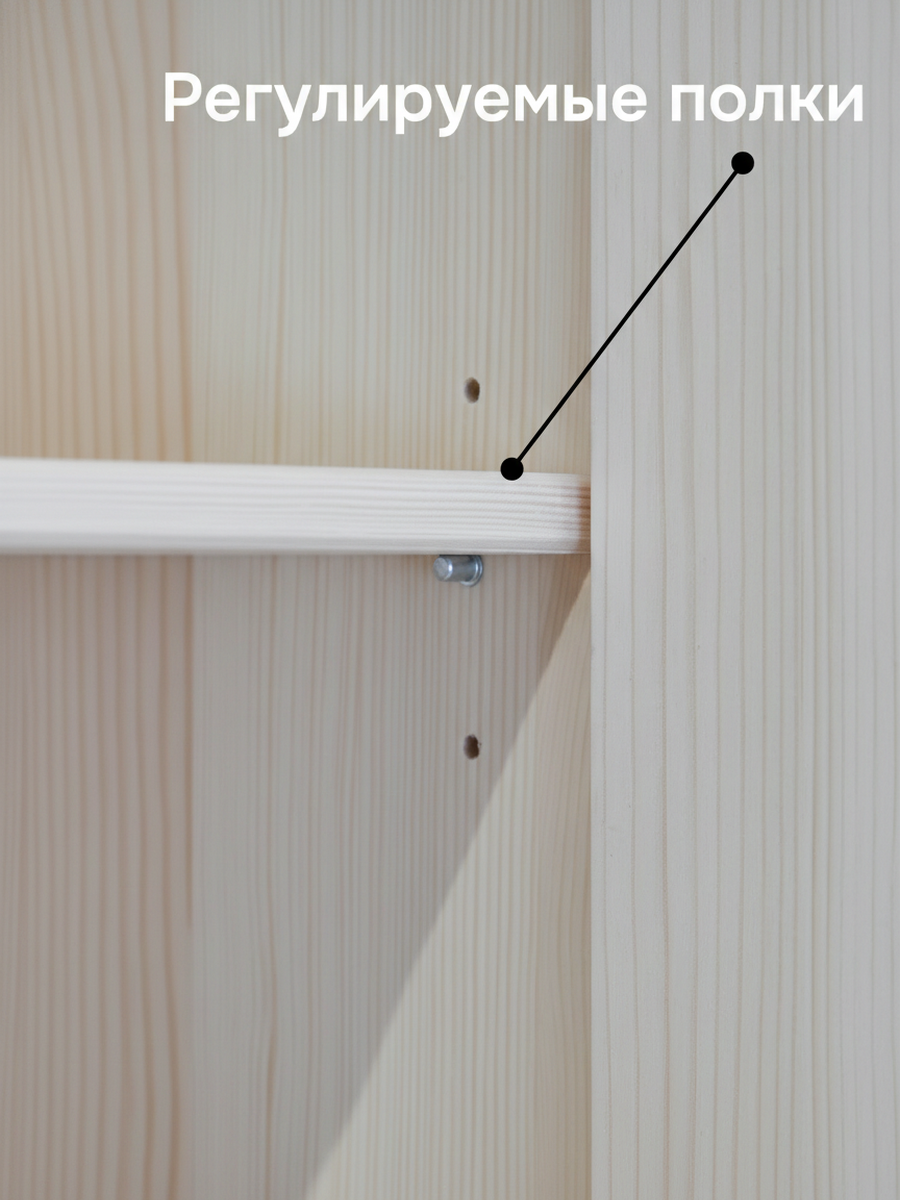 - Изготовлен из массива сосны, этот шкаф сохраняет естественную текстуру и тёплые оттенки древесины, добавляя уюта и природного шарма вашему интерьеру.