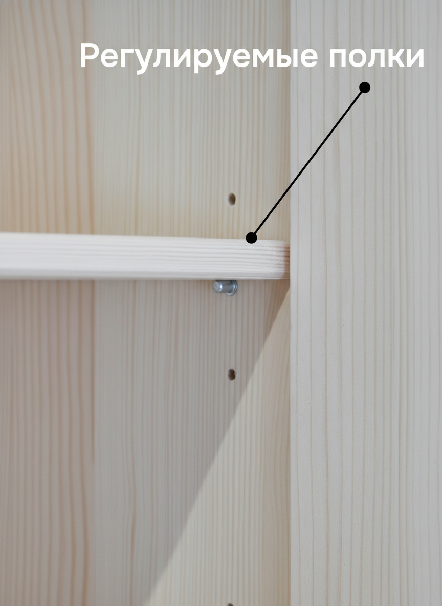 - Шкаф изготовлен из массива сосны, что гарантирует долговечность и устойчивость к износу.
