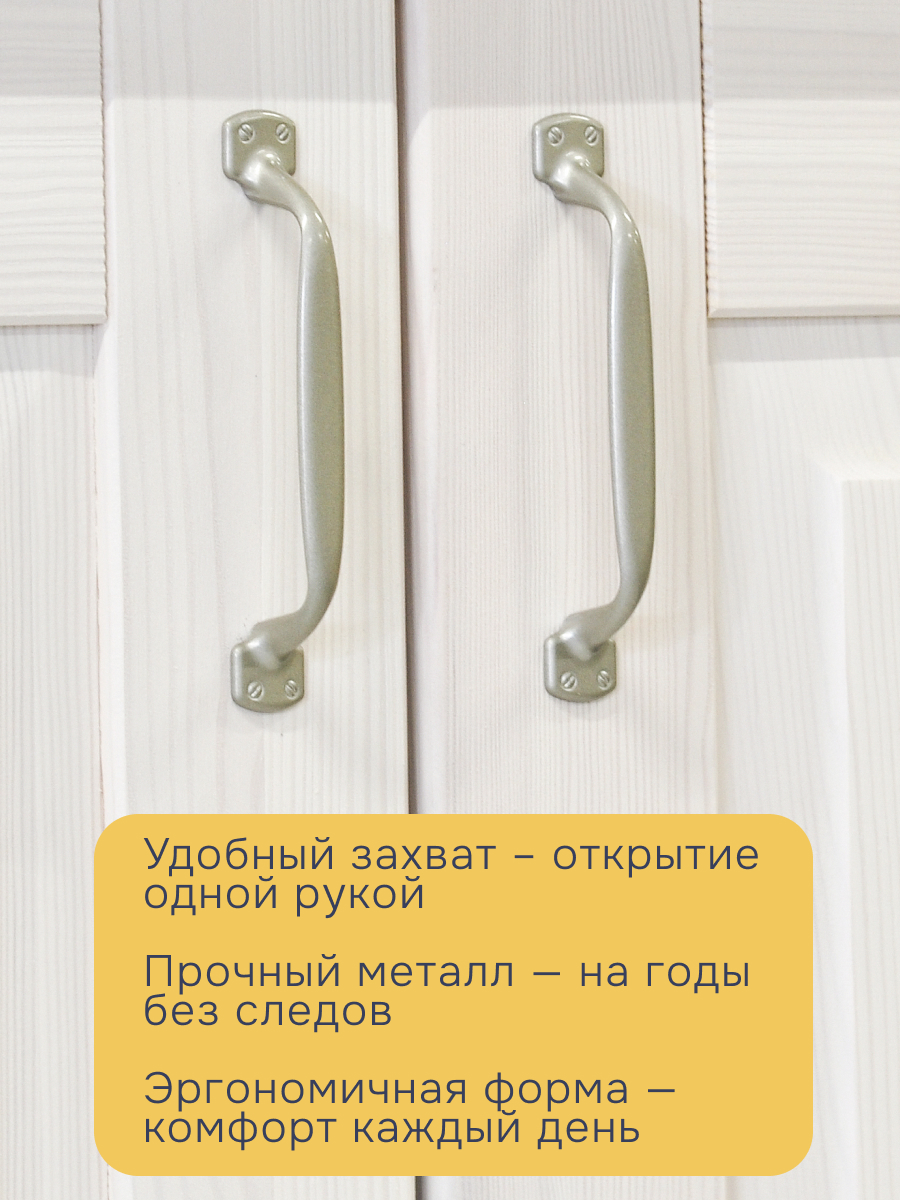- Дверцы легко открываются, предоставляя доступ к вместительным полкам, идеально подходящим для хранения посуды, кухонных аксессуаров и продуктов.
