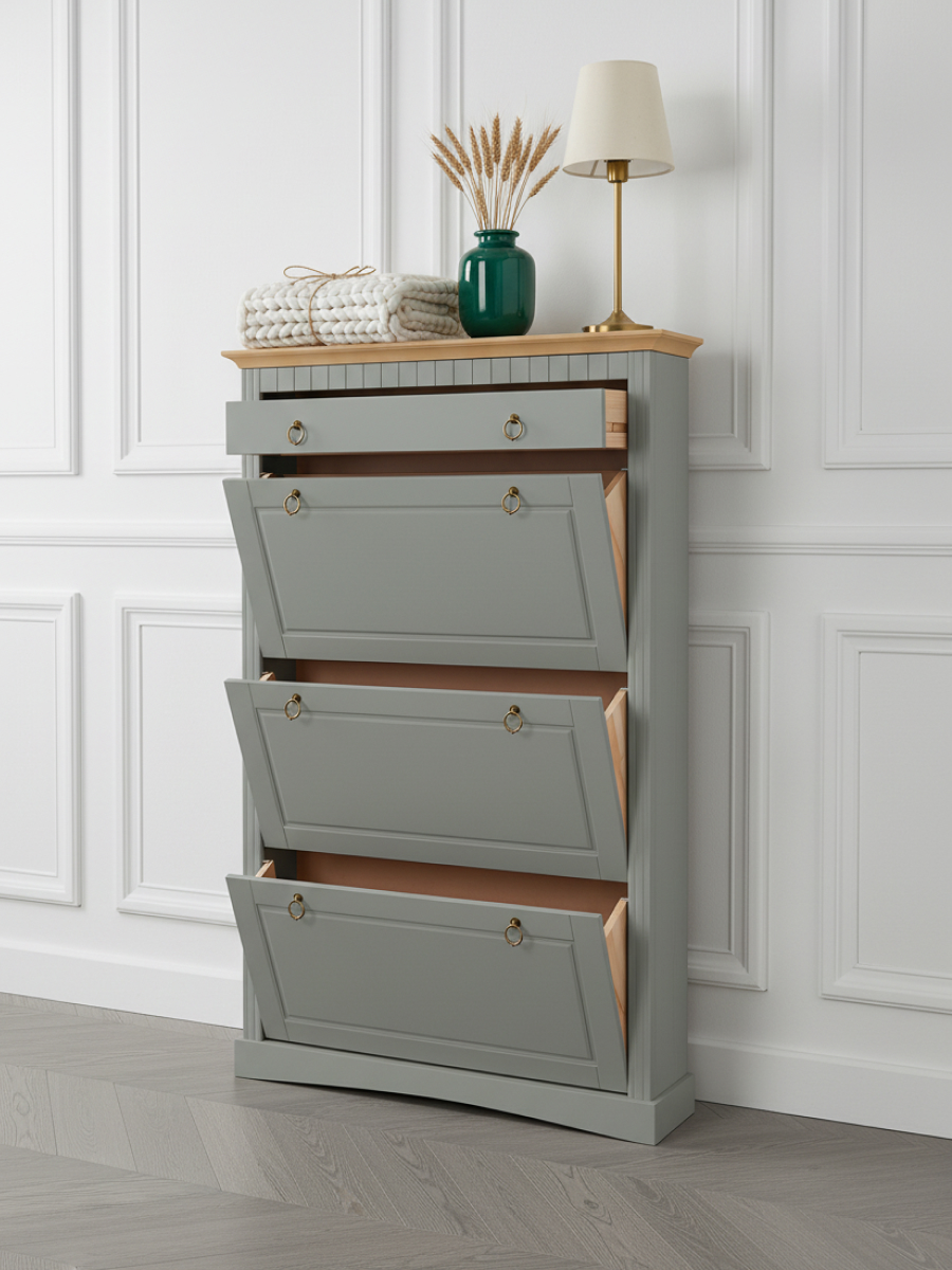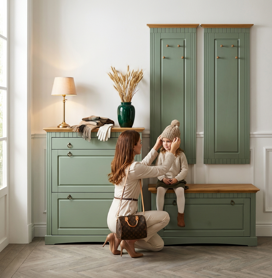 Зеленая обувница для прихожей станет незаменимым помощником в вашем доме, объединяя в себе функции хранения и комфортного использования.