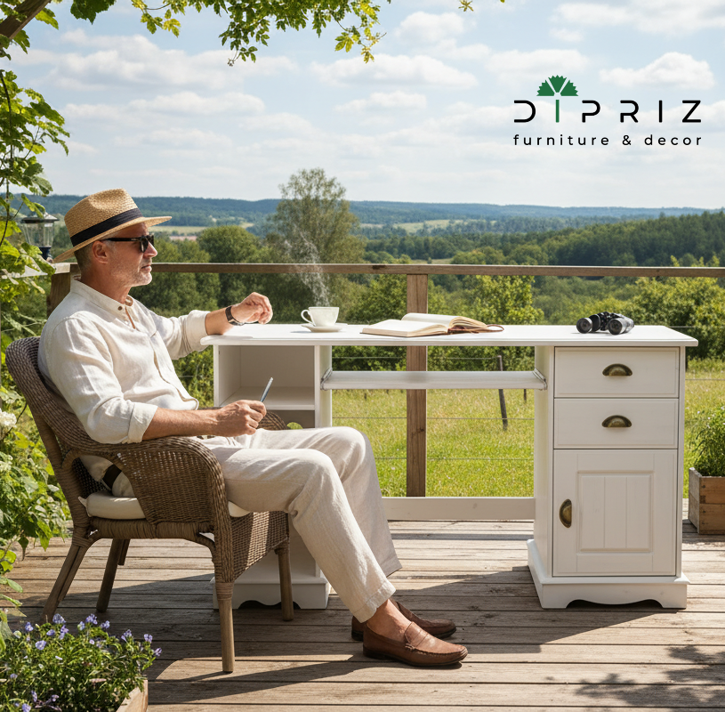 Стол письменный CLAUDIA от белорусского бренда DIPRIZ — гармония природной теплоты и безупречной функциональности.