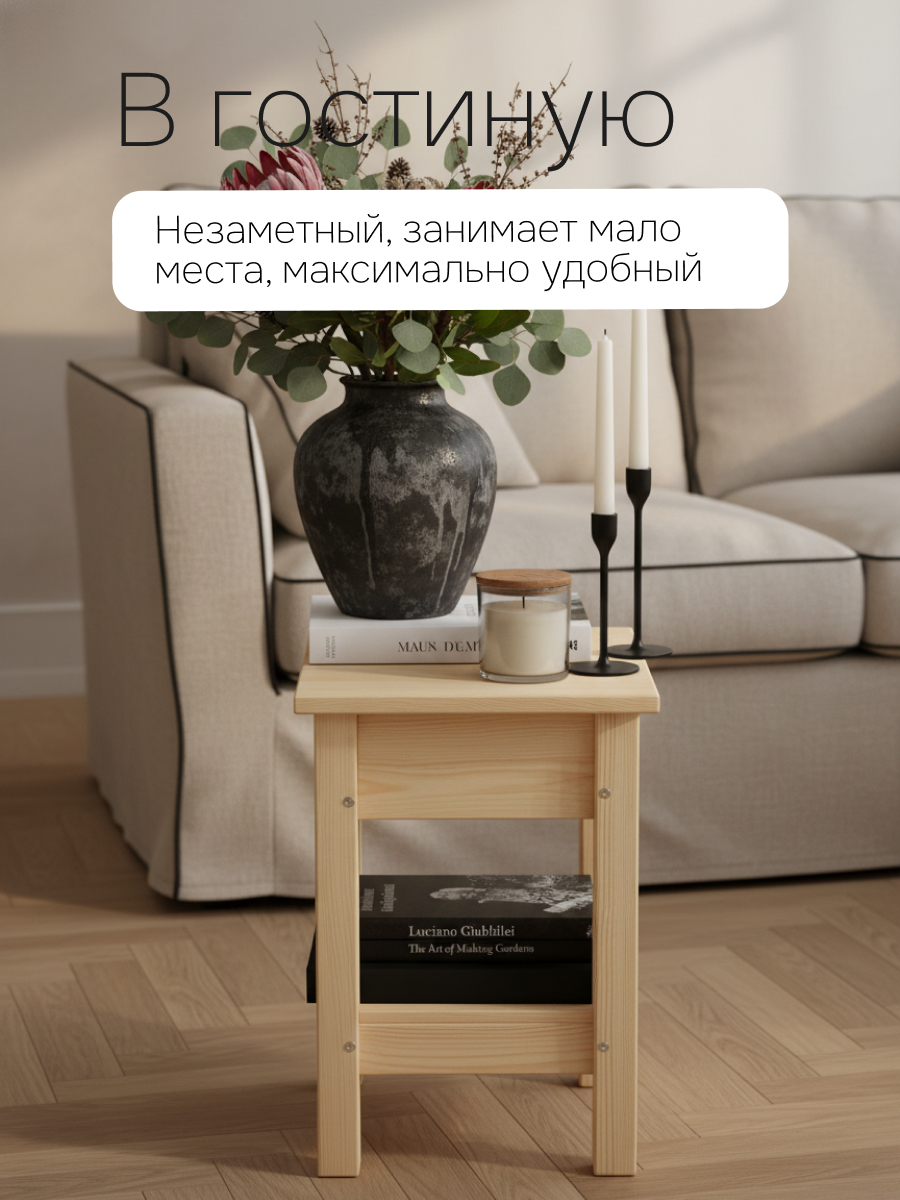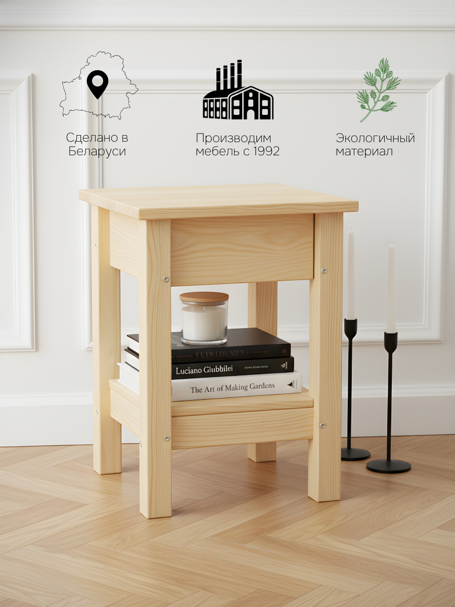 Наши уникальный табурет - улучшенный вариант обычного табурета, к которому все привыкли. Внутрь табурета мы встроили ящик, в котором можно хранить ваши любимые вещи, так же мы дополнили табурет полочкой. В производстве использовались только экологически чистые отделочные материалы, что гарантирует полную безопасность использования как детьми, так и взрослыми. Табурет не имеет отделки, а это значит, что вы можете покрыть его лаком или любым материалом, который предназначен для работы с натуральным деревом, таким образом только у вас будет уникальный товар, который не встретится ни у кого другого. Мы используем только качественные материалы и фурнитуру. чтобы наша мебель радовала вас очень долгое время. Вы можете использоать табурет в любом месте вашего дома: на кухне, в гостинной, в спальне, зале, летом можете использовать на улице.Если вы предпочитаете мебель от известного бренда, то мы рады предложить вам табуретки, изготовленные с использованием передовых технологий и инновационных материалов. Наши деревянные табуретки сочетают в себе функциональность и эстетику минимализма. Изготовленные из качественных материалов, они обеспечивают прочность и долговечность. Благодаря своей прочной конструкции, кухонные стулья способны выдержать значительную нагрузку и прослужить Вам долгие годы. Стулья легко переносить в необходимое помещение, будь то кухня, ванная, детская, прихожая или балкон. Каждый табурет имеет комфортное сиденье и устойчивую основу, что делает его идеальным выбором для использования на кухне. Вы сможете наслаждаться приятными беседами в кругу семьи или друзей, сидя на удобных табуретах. Для обеспечения максимальной прочности и долговечности при необходимости подтягивайте шурупы при сборке мебели. Стул поставляется в разобранном виде вместе с фурнитурой и инструкцией по сборке в одной плоской, удобной упаковке. Создавайте уютную и стильную обстановку в своей кухне с помощью нашей мебели!