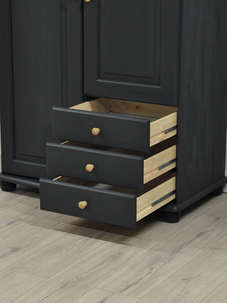 Шкаф Фалко для хранения одежды и вещей из красивого цельного дерева привнесет атмосферу домашнего уюта. Деревянные шкафы данной серии привлекают к себе внимание видимой структурой неповторимых поверхностей дерева и необычным окрасом. Дизайн придерживается минималистичного, скандинавского стиля. Изысканный модуль состоит из двухстворчатого отделения, оснащенного распашными дверями. Простой лаконичный образ шкафа подойдет как для дачи и деревни, так и для современной квартиры или дома. Шкаф вместительный с полками и выдвижными ящиками, однако не громоздкий. Идеально подойдет для спальни, детской комнаты и даже кабинета. Шкаф можно использовать в прихожей, спальной комнате и детской комнате. Деревянные шкафы серии Фалко идеально подойдут для хранения одежды, игрушек, постельного белья, одеял и подушек, детских вещей и детской одежды. Дополнительный комфорт привносят ящики для хранения аксессуаров и других элементов гардероба. Вид отделки серый, крышка антик.