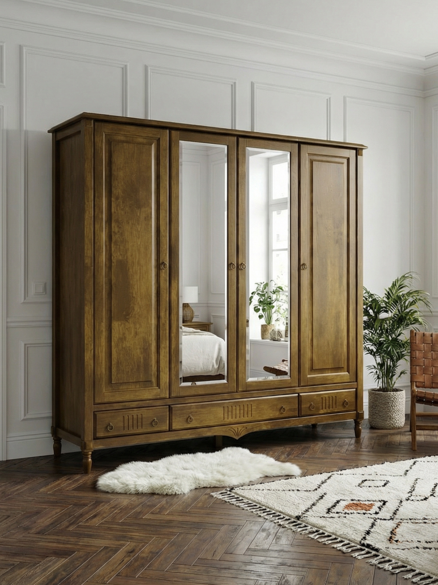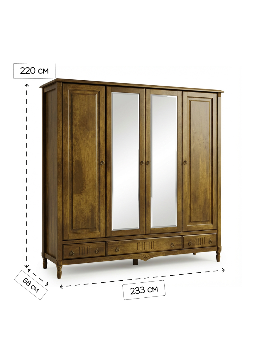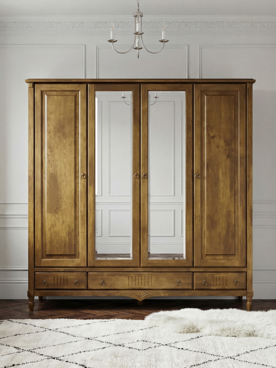 Созданный из прочного массива берёзы, он сочетает надежность и эстетику. Тёмно-коричневый оттенок «макиато» дополняет интерьер в классическом или итальянском стиле.