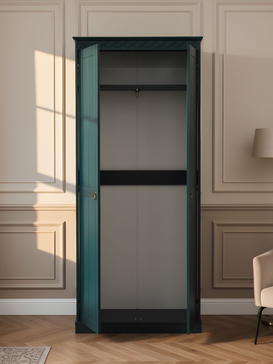 Внутренняя ширина 72,8 см и глубина 30,8 см обеспечивают достаточное пространство для хранения, не занимая лишнего места в комнате. Ширина каждой дверцы — 36 см, что обеспечивает удобный доступ ко всему содержимому. Выдвижная штанга для вешалок — особая деталь, которая позволяет легко доставать одежду, не перебирая весь гардероб.