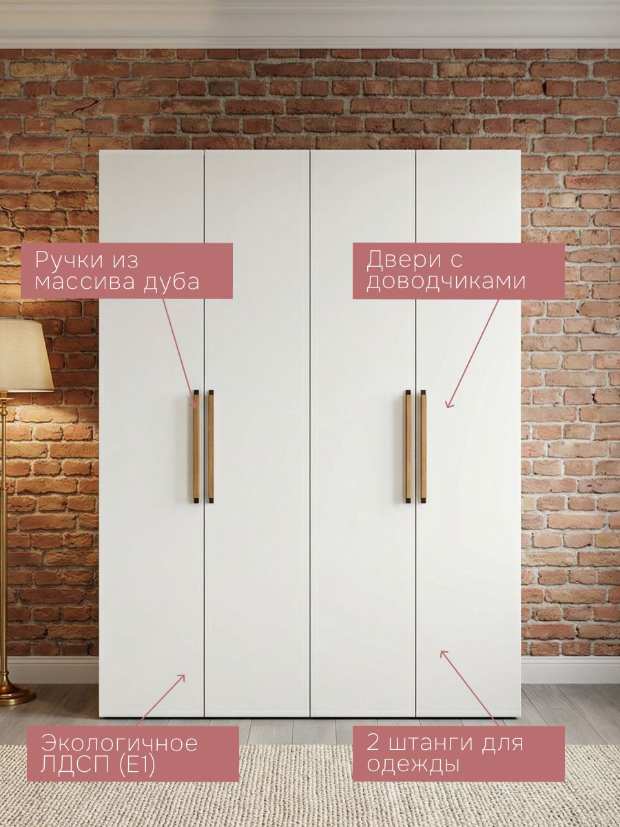 Просторный и вместительный: Большие габариты (ВхШхГ: ~208x161x50 см) позволяют разместить обширный гардероб.