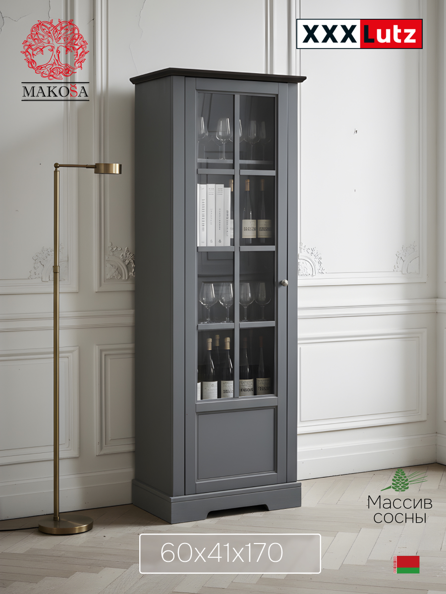 Шкаф витрина имеет распашную дверь, которая обеспечивает легкий доступ к содержимому, не занимая при этом много места. Эта стеклянная дверца защищает ваши вещи от пыли, оставаясь при этом прозрачной, чтобы ваши любимые предметы постоянно были на виду. Четыре съемные полки обеспечивают достаточно пространства для хранения вещей и посуды. Максимальная нагрузка составляет до 5 кг на полку.