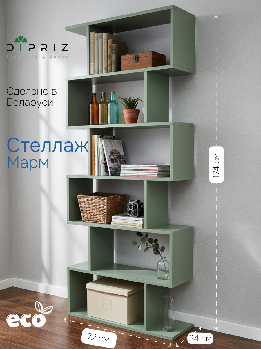 - Компактные размеры — высота 173,8 см, ширина 72 см, глубина 24 см, с расстоянием между полками 27 см.