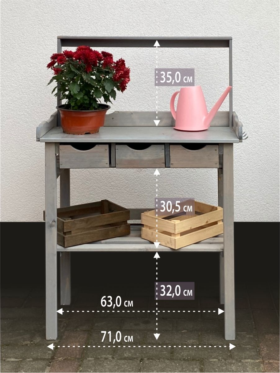 Стол деревянный предназначен для пересадки цветов, подготовки рассады, микрозелени. На нем можно разместить саженцы, цветочные горшки, мини-парники и аксессуары для рассады. Надстройку над столом можно использовать для сушки трав и как крепление для фито лампы. Дополнительная полка в низу позволяет использовать стол садовый как напольную подставку стеллаж для растений – экономить пространство на вашей мастерской, балконе, террасе.Столешница выполнена из массива сосны защищена оцинкованной поверхностью, что позволяет осуществлять сортировку овощей и промывку корнеплодов непосредственно на вашем садовом участке и просушку их на реечной полочке.Столик садовый для пересадки растений добавит нотку оригинальности вашему дому и даче, балкону и лоджии, беседке и веранде. СОЗДАДИМ УЮТ ВМЕСТЕ!!!