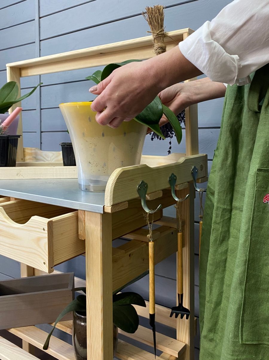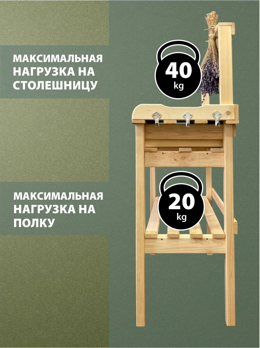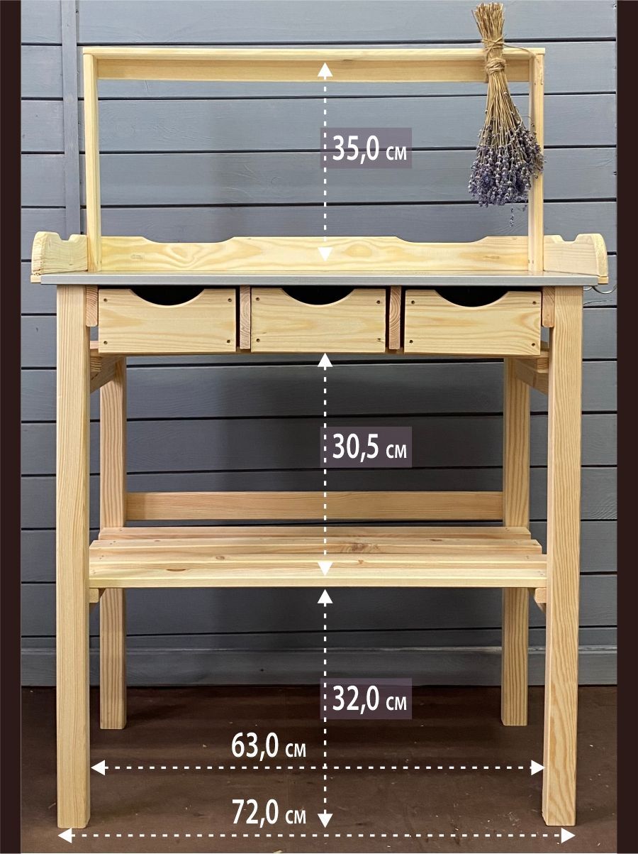 Стол деревянный предназначен для пересадки цветов, подготовки рассады, микрозелени. На нем можно разместить саженцы, цветочные горшки и аксессуары для рассады. Надстройку над столом можно использовать для сушки трав и как крепление для фито лампы. Дополнительная полка в низу позволяет использовать стол садовый как напольную подставку стеллаж для растений – экономить пространство на вашей мастерской, балконе, террасе.Столешница выполнена из массива сосны защищена оцинкованной поверхностью, что позволяет осуществлять сортировку овощей и промывку корнеплодов непосредственно на вашем садовом участке и просушку их на реечной полочке.Стол для сада добавит нотку оригинальности вашему дому и даче, балкону и лоджии, беседке и веранде. СОЗДАДИМ УЮТ ВМЕСТЕ!!!