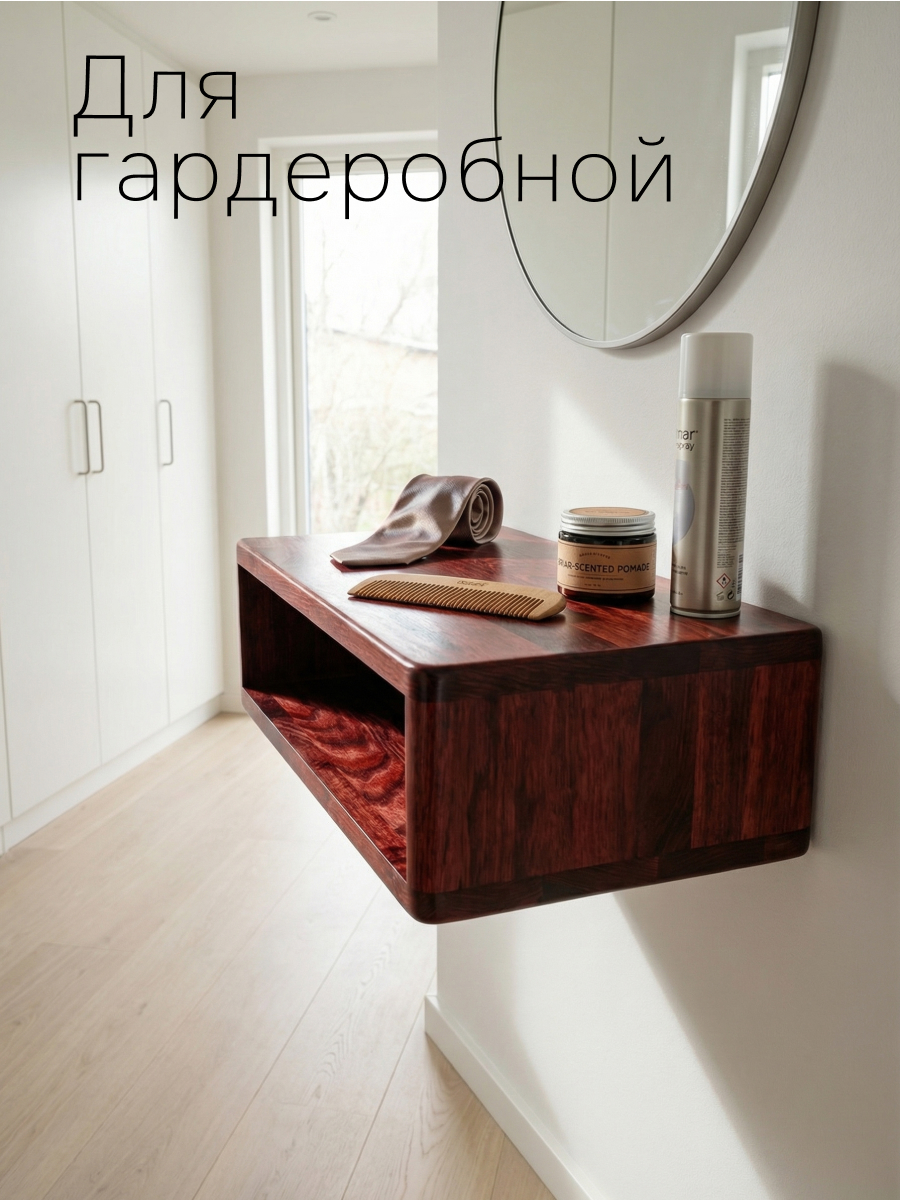 Эта консоль сочетает минималистичный дизайн с функциональностью: глубокий красный цвет добавляет интерьеру индивидуальности, а прочная древесина выдерживает нагрузки без потери формы.