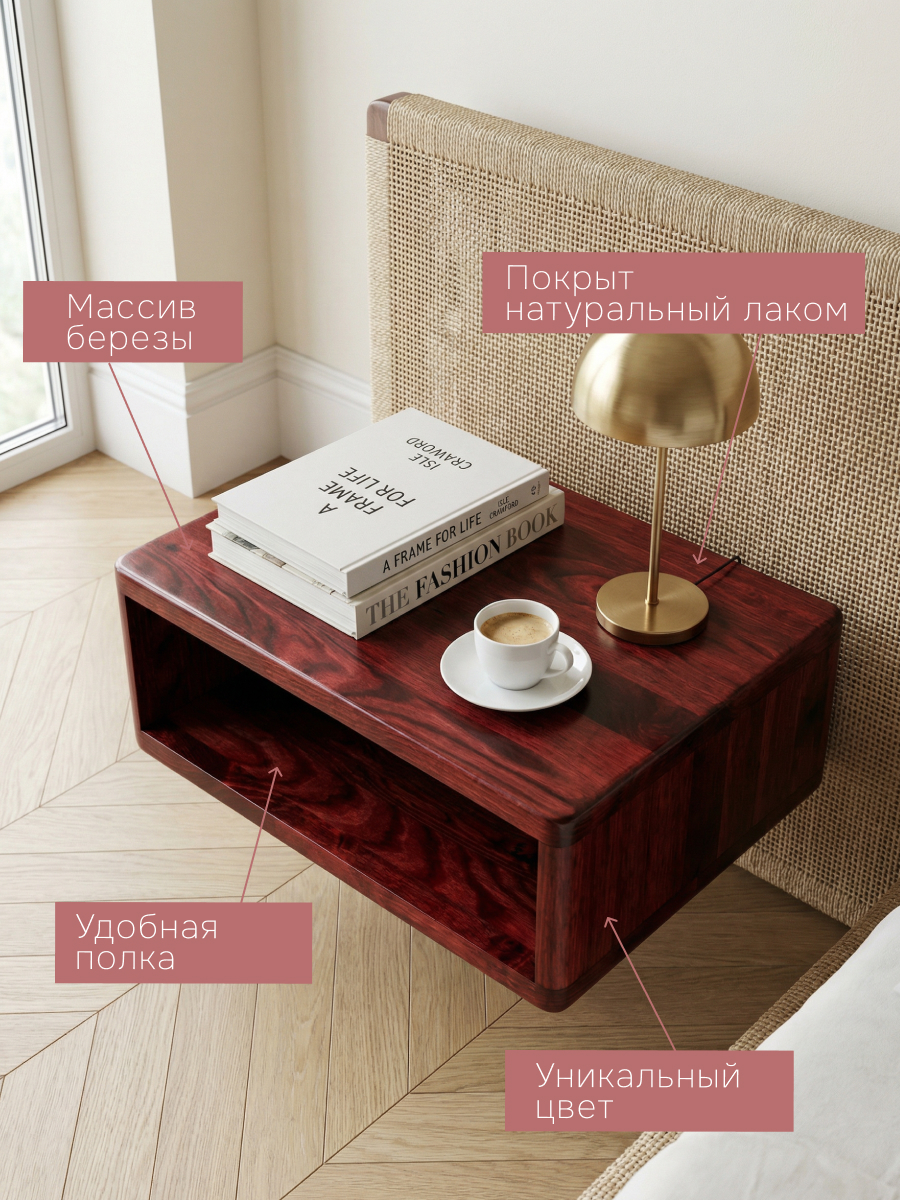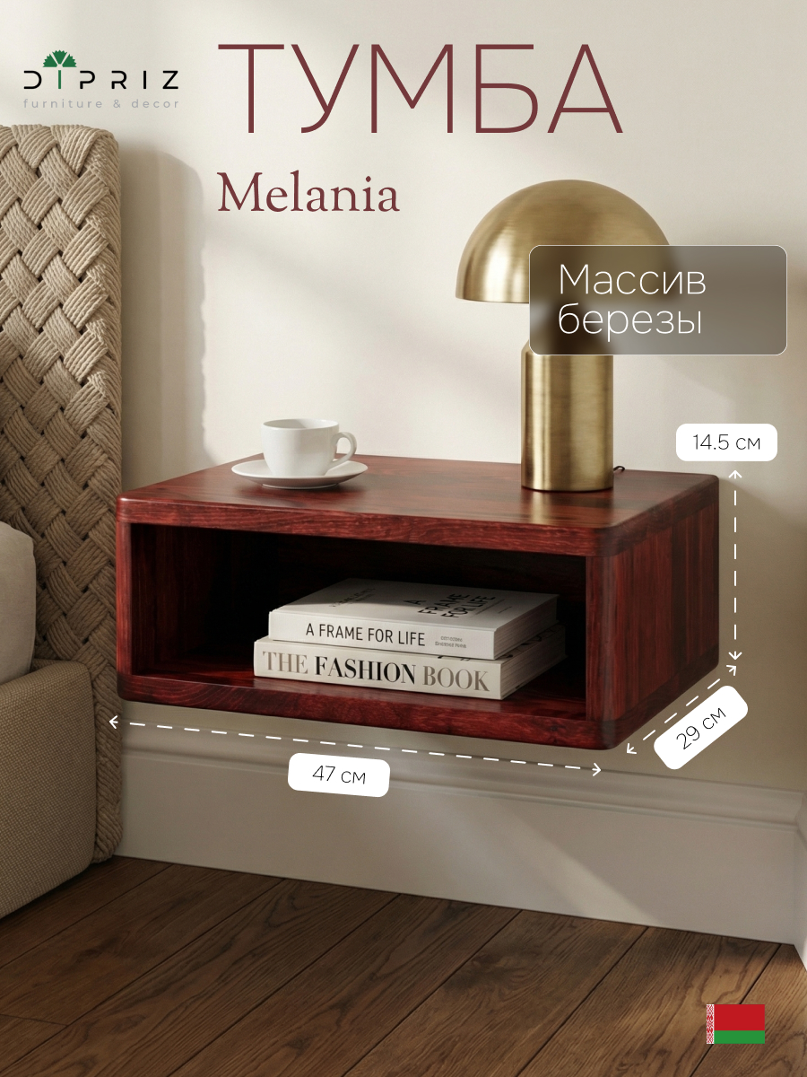 Тумба прикроватная «Мелания» от бренда Dipriz выполнена из натурального массива березы, что гарантирует долговечность и экологическую безопасность. Её подвесная конструкция создаёт эффект «парящего» элемента интерьера, а компактные размеры идеально подходят для маленьких пространств. Встроенная полочка обеспечивает удобное хранение мелочей или декора.