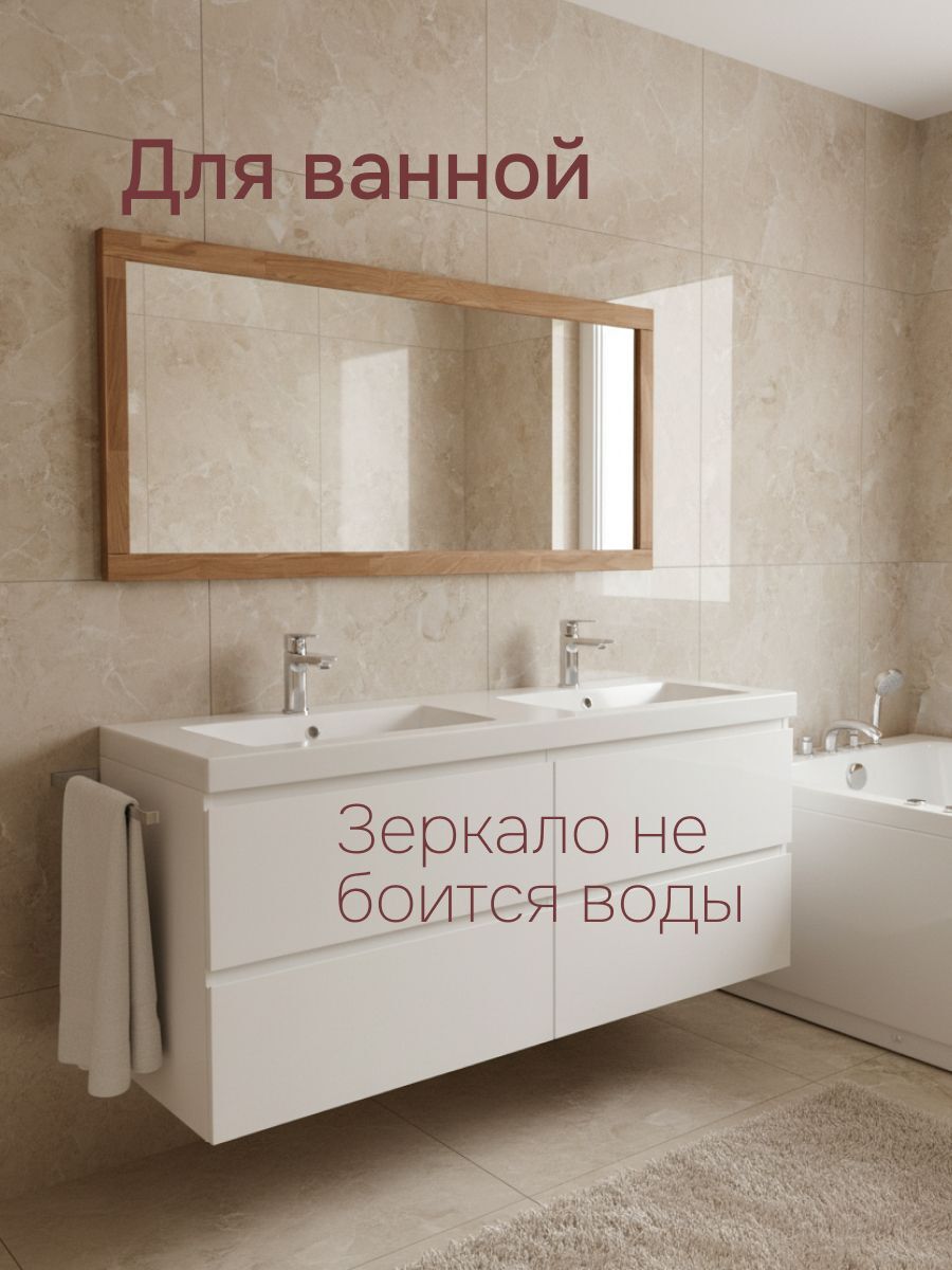 Массив дуба с масляным покрытием не только подчеркивает естественную текстуру древесины, но и защищает раму, обеспечивая долговечность и устойчивость к внешним воздействиям. Зеркало отличается высоким качеством стекла с антибликовым покрытием, что гарантирует четкое отражение при любом освещении и создаёт ощущение расширения пространства.
